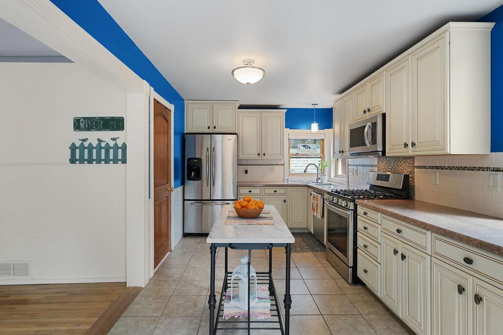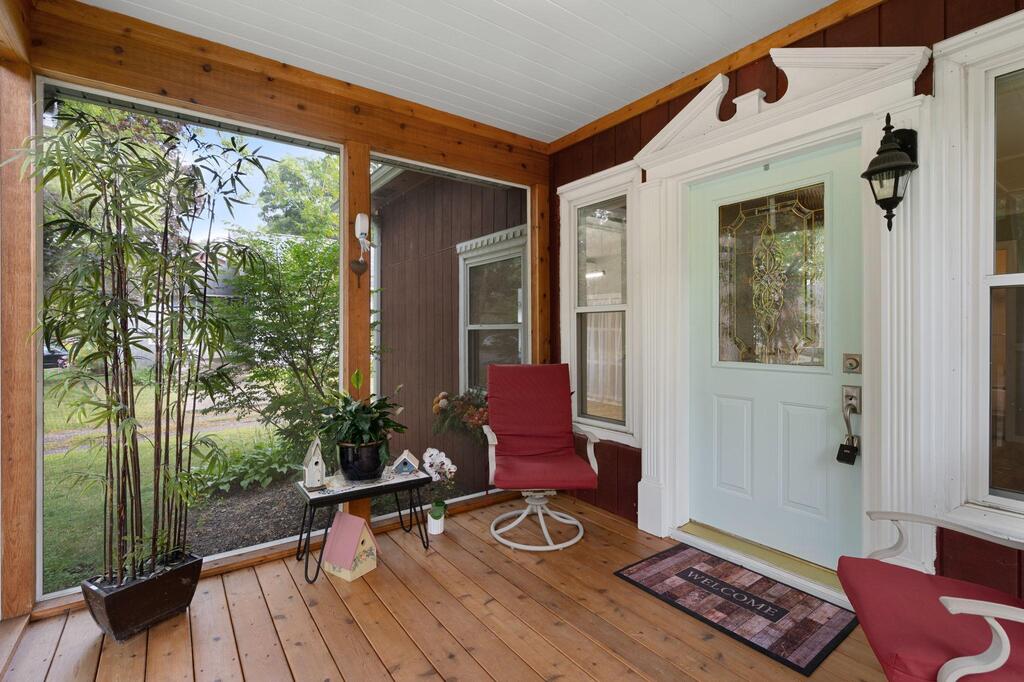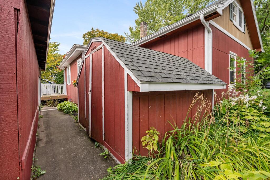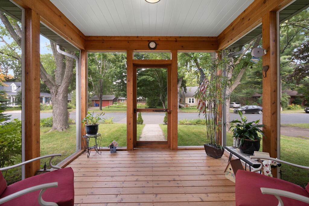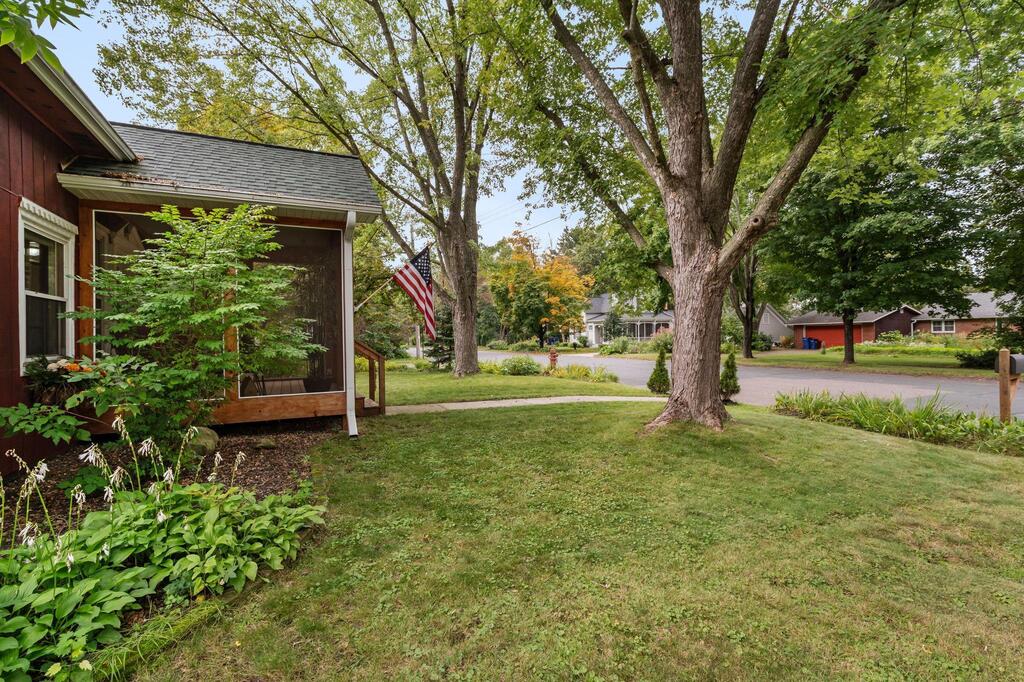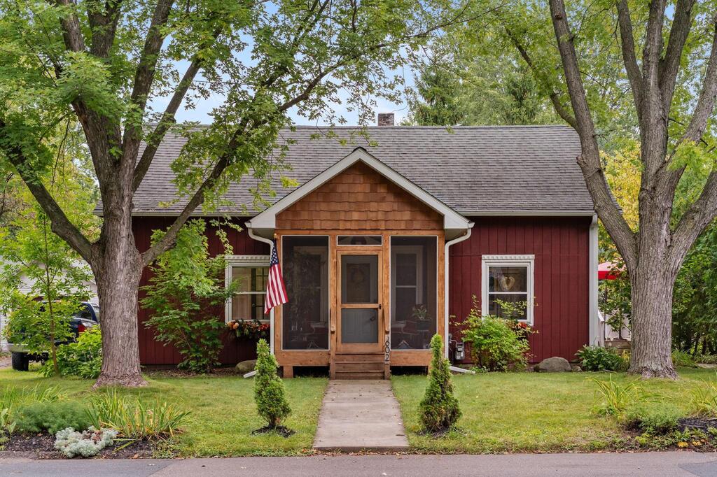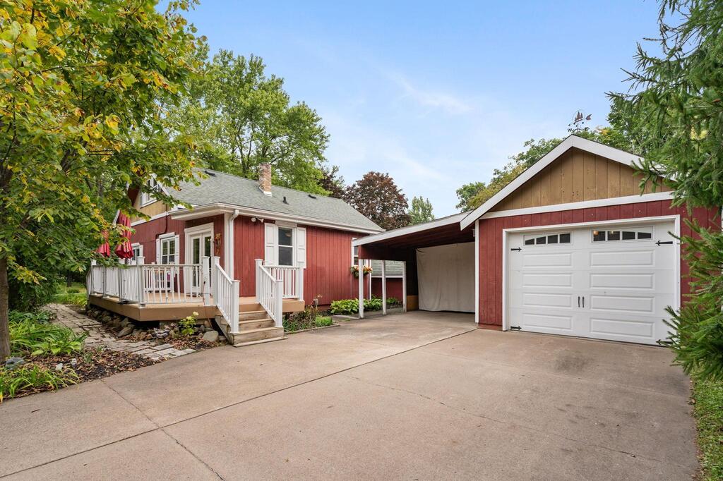 Set on historic River St in Osceola, this quaint turn-of-the-century cottage-style gem offers timeless character with today’s modern conveniences. From the inviting screened front porch (2021) through to the maintenance-free wrap-around deck (2016), this home is full of warmth and curb appeal. Step inside to discover an updated kitchen with SS appliances (DW-2019), a stunning custom ceiling medallion and chandelier in the dining room, and your choice to use the beautiful French doors between the dining and living rooms, or keep wide open. The main level has warm hardwood floors throughout! The primary bedroom is conveniently located on the main level, offering ease & comfort. The bonus studio room on the main level could be an office, or even used as a 5th bedroom! Upstairs, you’ll find 2 more bedrooms with ample under-eave alcove-type closet areas, or have fun in the alcoves for a reading nook or play area! The lower level has a finished bedroom space with an egress window, as well as a nice utility/laundry room. Outside is easy-care with a modest lawn space and beautiful perennial gardens & landscaping framing the yard. The home has full gutters w/ gutter guards. The detached garage is all wired up for your electric vehicle and storage is available in the adjacent carport or shed. Best of all, you’re within walking distance to the library, fine dining, and all the shops, activities and festivities happening all year in beautiful Osceola. Come join us in our little river town community – you will love it here!