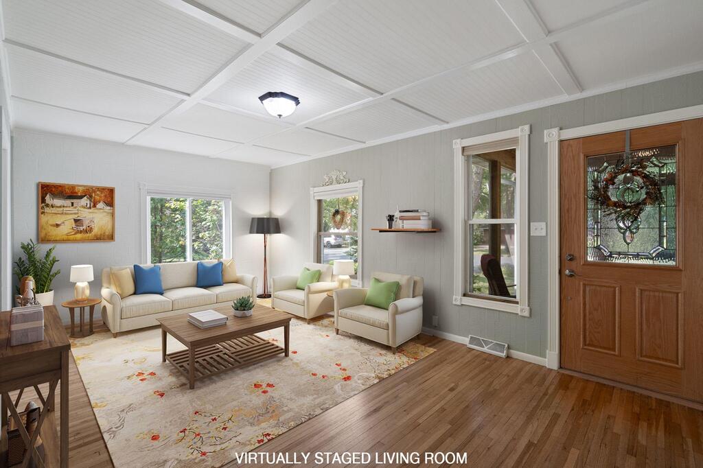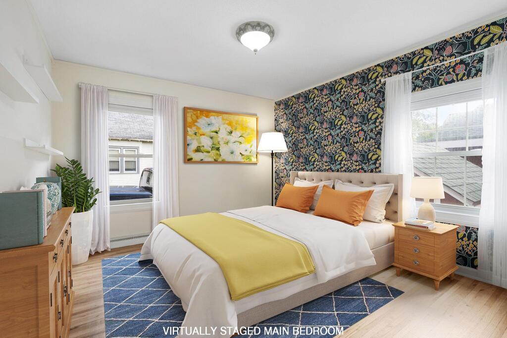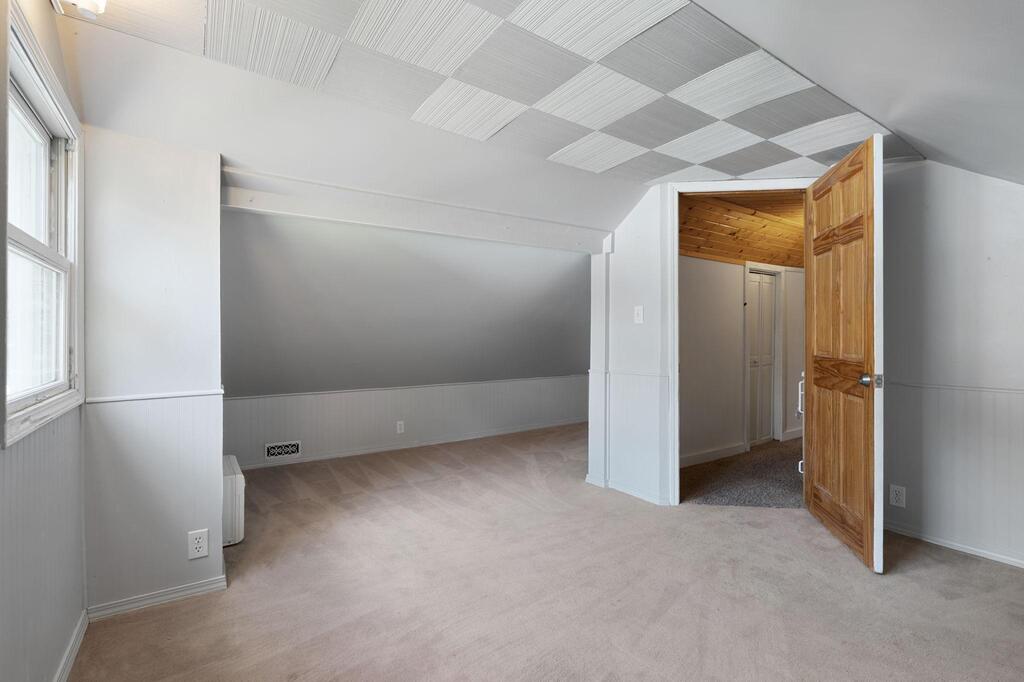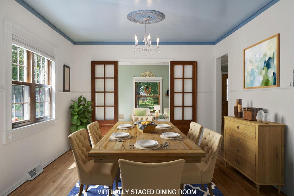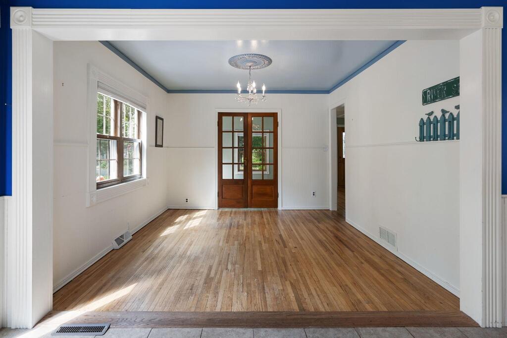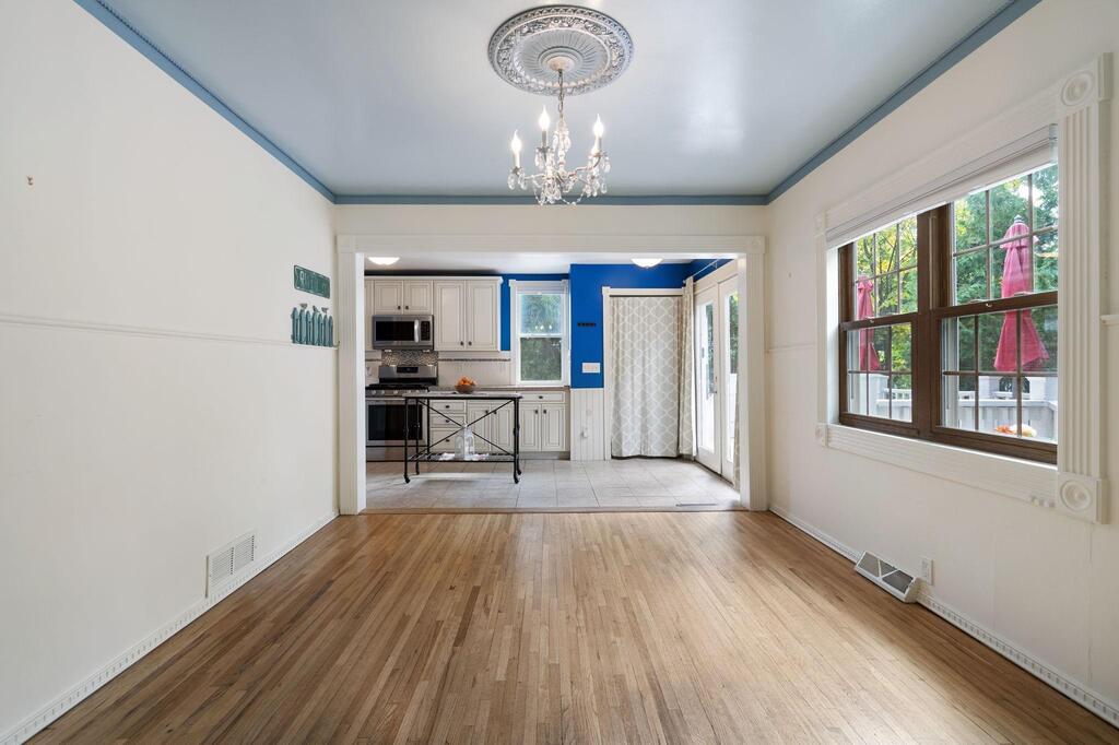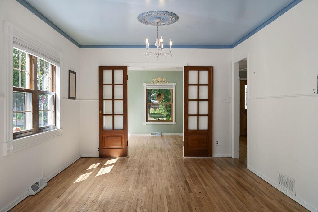 Set on historic River St in Osceola, this quaint turn-of-the-century cottage-style gem offers timeless character with today’s modern conveniences. From the inviting screened front porch (2021) through to the maintenance-free wrap-around deck (2016), this home is full of warmth and curb appeal. Step inside to discover an updated kitchen with SS appliances (DW-2019), a stunning custom ceiling medallion and chandelier in the dining room, and your choice to use the beautiful French doors between the dining and living rooms, or keep wide open. The main level has warm hardwood floors throughout! The primary bedroom is conveniently located on the main level, offering ease & comfort. The bonus studio room on the main level could be an office, or even used as a 5th bedroom! Upstairs, you’ll find 2 more bedrooms with ample under-eave alcove-type closet areas, or have fun in the alcoves for a reading nook or play area! The lower level has a finished bedroom space with an egress window, as well as a nice utility/laundry room. Outside is easy-care with a modest lawn space and beautiful perennial gardens & landscaping framing the yard. The home has full gutters w/ gutter guards. The detached garage is all wired up for your electric vehicle and storage is available in the adjacent carport or shed. Best of all, you’re within walking distance to the library, fine dining, and all the shops, activities and festivities happening all year in beautiful Osceola. Come join us in our little river town community – you will love it here!